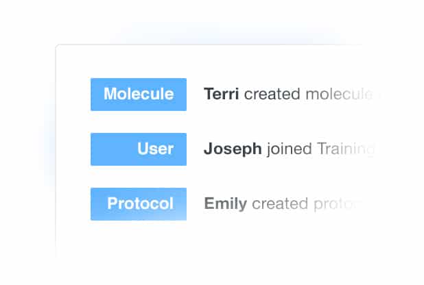 - Intuitive Registration: Each entity is assigned a unique ID for traceability across the R&D cycle. Capture parent, batch, and sample IDs from collaborators, vendors and partners so records are easily located.