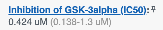 When using the predictions, be aware that the CDD Vault Inference Models are just that: models. Models are often wrong, and some non-linear models create near-perfect predictions on their training data but fail badly on novel data, leading to overly optimistic expectations. To help gauge trustworthiness, every prediction in CDD Vault includes an uncertainty estimate. For example, you might see: